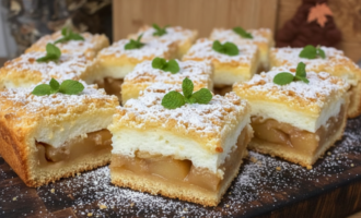 Яблучник з йогуртовою пінкою Простий та смачний пиріг з яблуками та пінкою на пісочному тісті — дещо